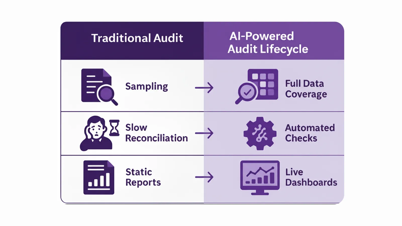 Most importantly, AI expands audit coverage from limited samples to 100% of the company’s transactions eliminating blind spots that traditional audits often miss.