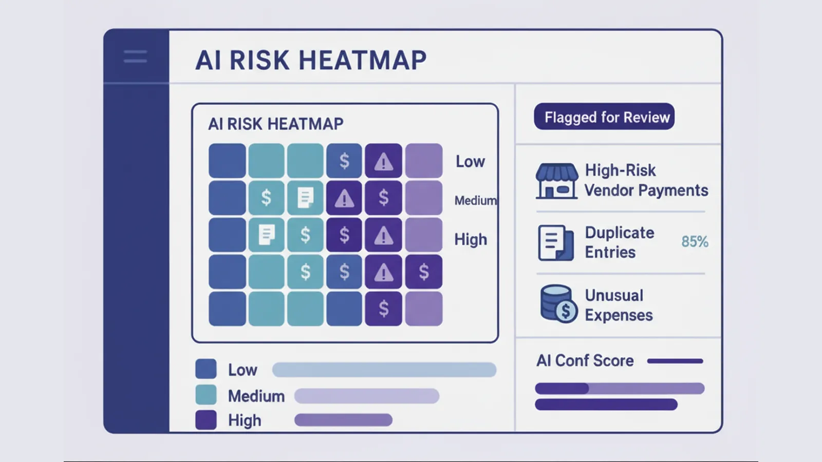 AI helps founders focus on what truly matters by scoring and ranking risks based on their severity, frequency, and potential impact. This ensures teams spend time on the areas that actually need attention, instead of manually combing through every transaction.