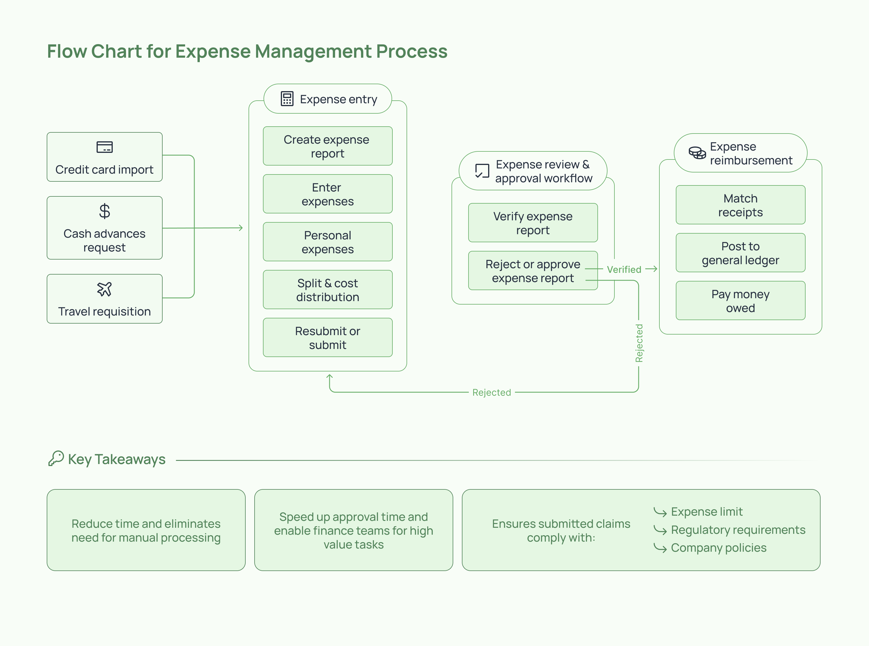 - Automated expense categorization across corporate cards, travel bookings, and reimbursements