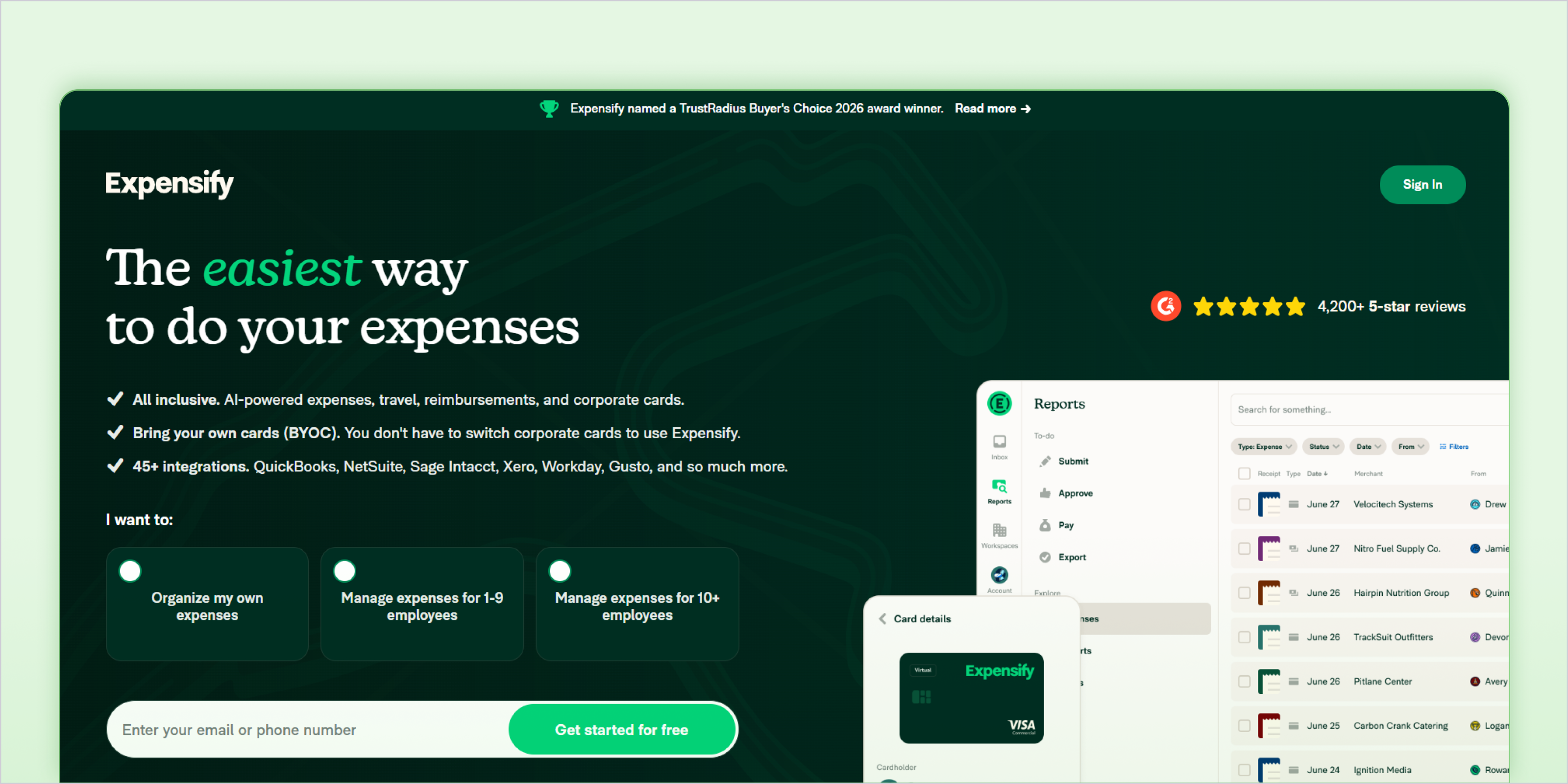 Expensify works well for companies that manage frequent employee reimbursements and travel-related expenses. Finance teams that process large volumes of receipts and expense reports use the platform to reduce manual data entry and maintain organized expense records.
