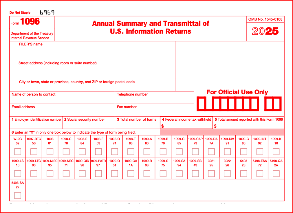 Form 1096 is only required if you file 1099 forms on paper. It acts as a summary cover sheet sent to the IRS along with physical forms. If you e-file, Form 1096 is not needed and should not be submitted.