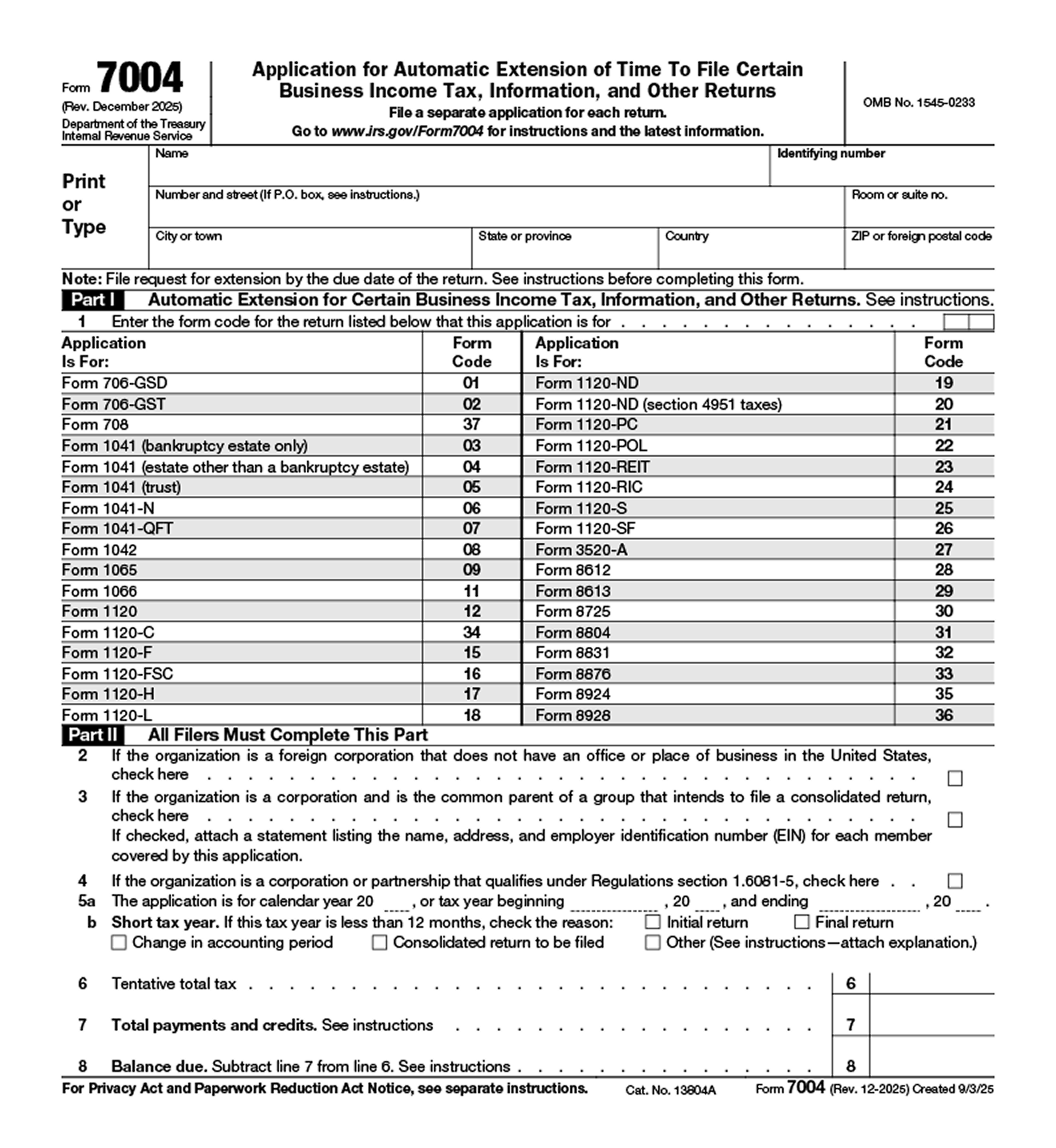 - Complete Form 7004 with accurate entity information and select the correct return type (Form 1120).
