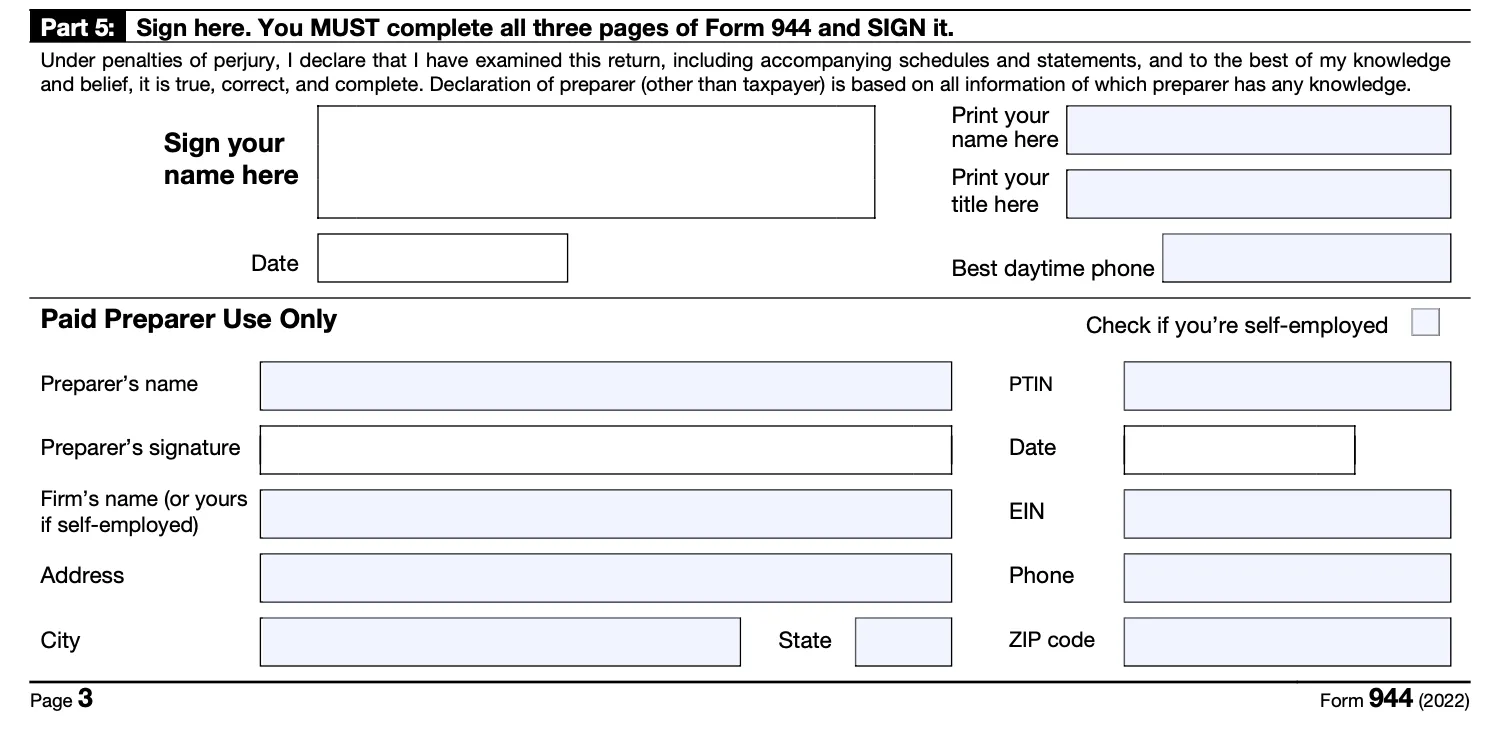 - After completing Form 944, please submit it to the IRS with any necessary payments.