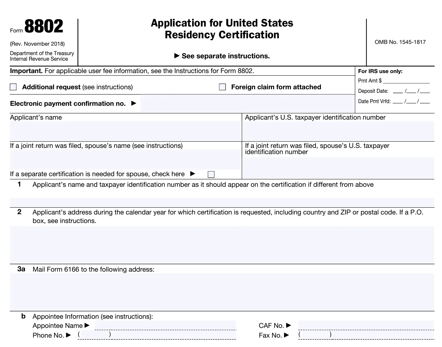 That’s what Form 8802 helps you do. It’s the IRS application you submit to get Form 6166, an official certificate of U.S. tax residency.