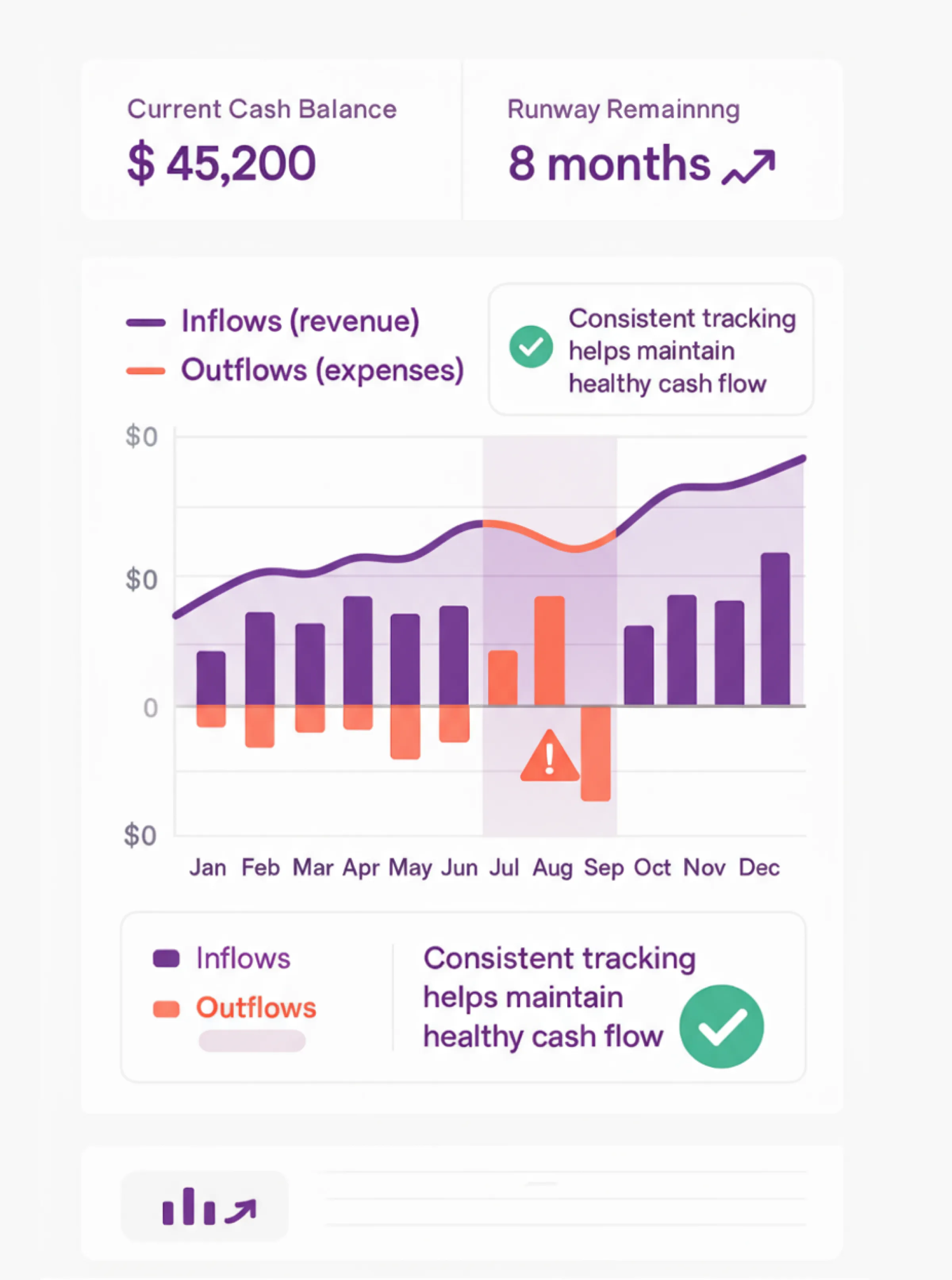 - Identify growth opportunities or cost overruns early, before they affect the runway.