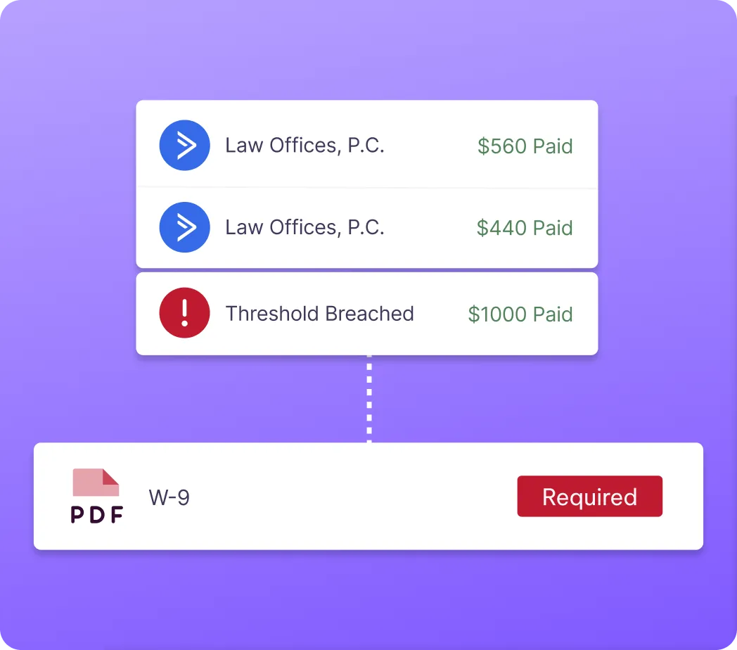 Enjoy automatic vendor detection, threshold alerts, a free W form generator with e-sign, and real-time updates for seamless tracking.