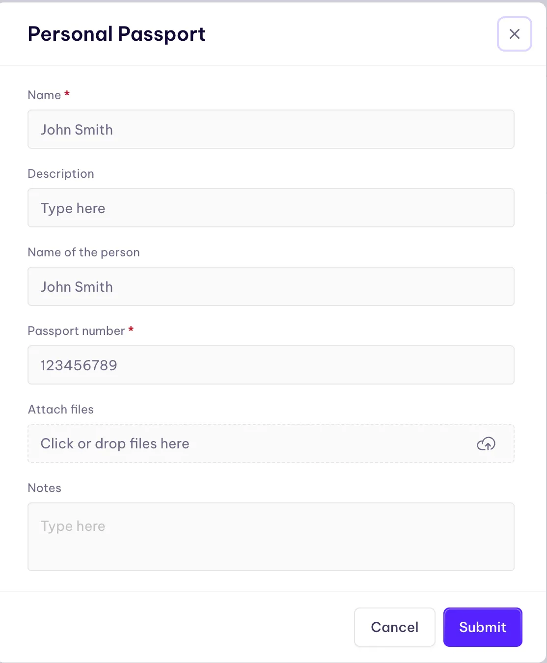 Everything added here is encrypted and only accessible to the Inkle team members who actively work on your filings.